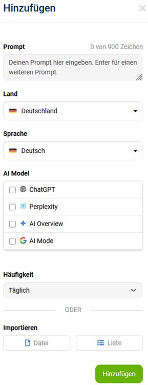 Screenshot vom Einrichten des Prompt-Monitorings in SISTRIX